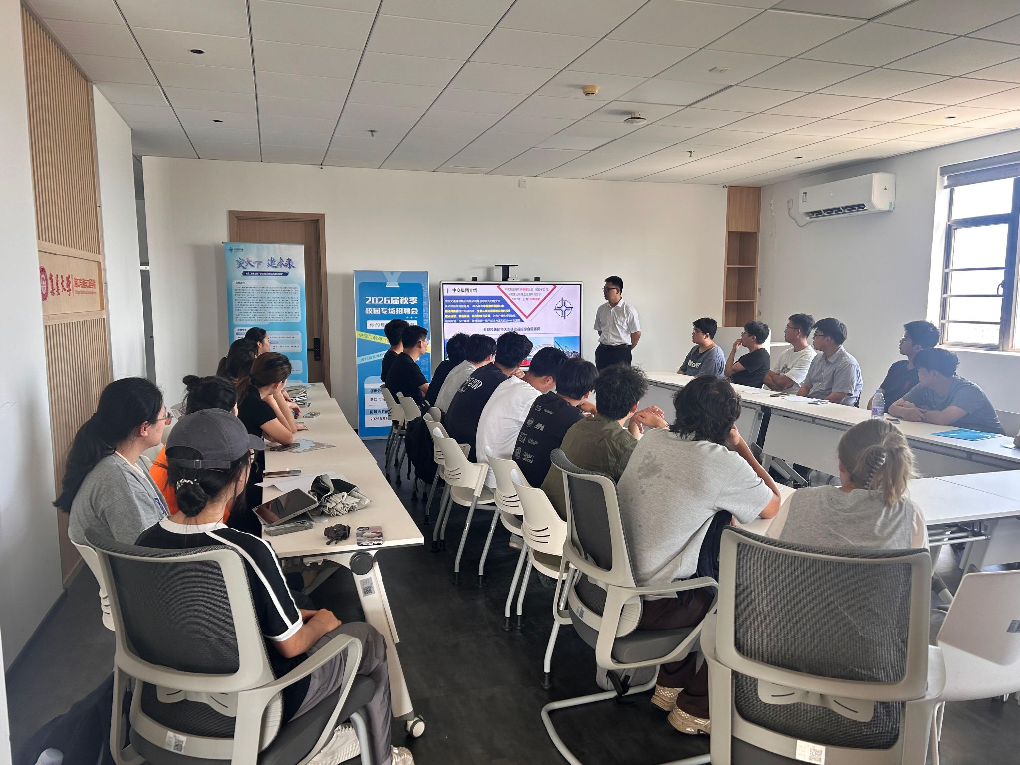 9月10日,港口与海岸工程学院为2026届毕业生精心策划的“小精专优”专场招聘会在集诚楼14楼举行,此次招聘会标志着学院新一届毕业生就业促进工作全面启动。中交二航局(福州)建设有限公司作为重点用人单位到校开展专场招聘。